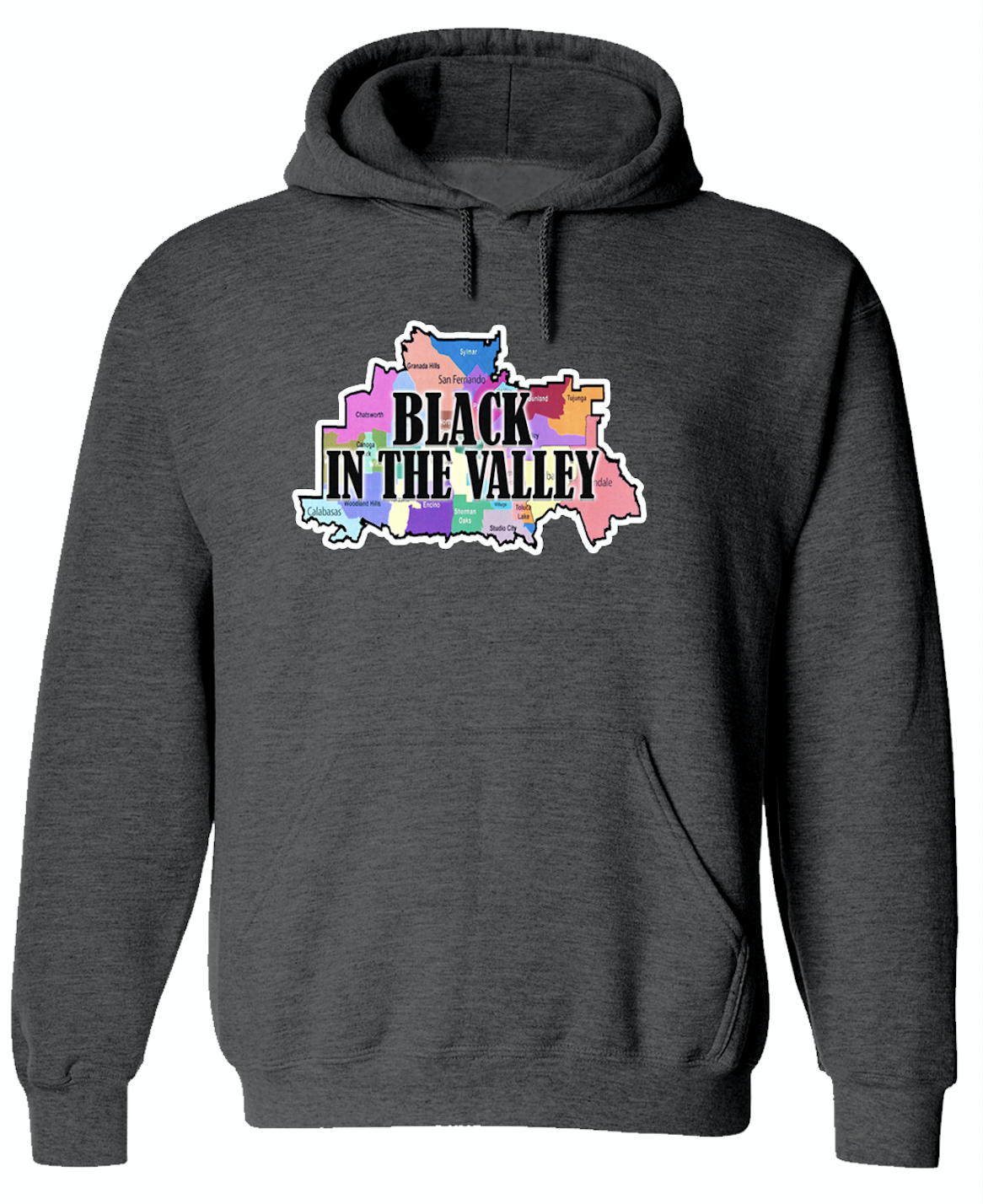 Rep your hood and be a part of the movement in this Black In The Valley sweatshirt. This durable 100% cotton sweatshirt comes in Charcoal and Light Grey. Be the envy of your neighborhood with your Black In The Valley sweatshirt.